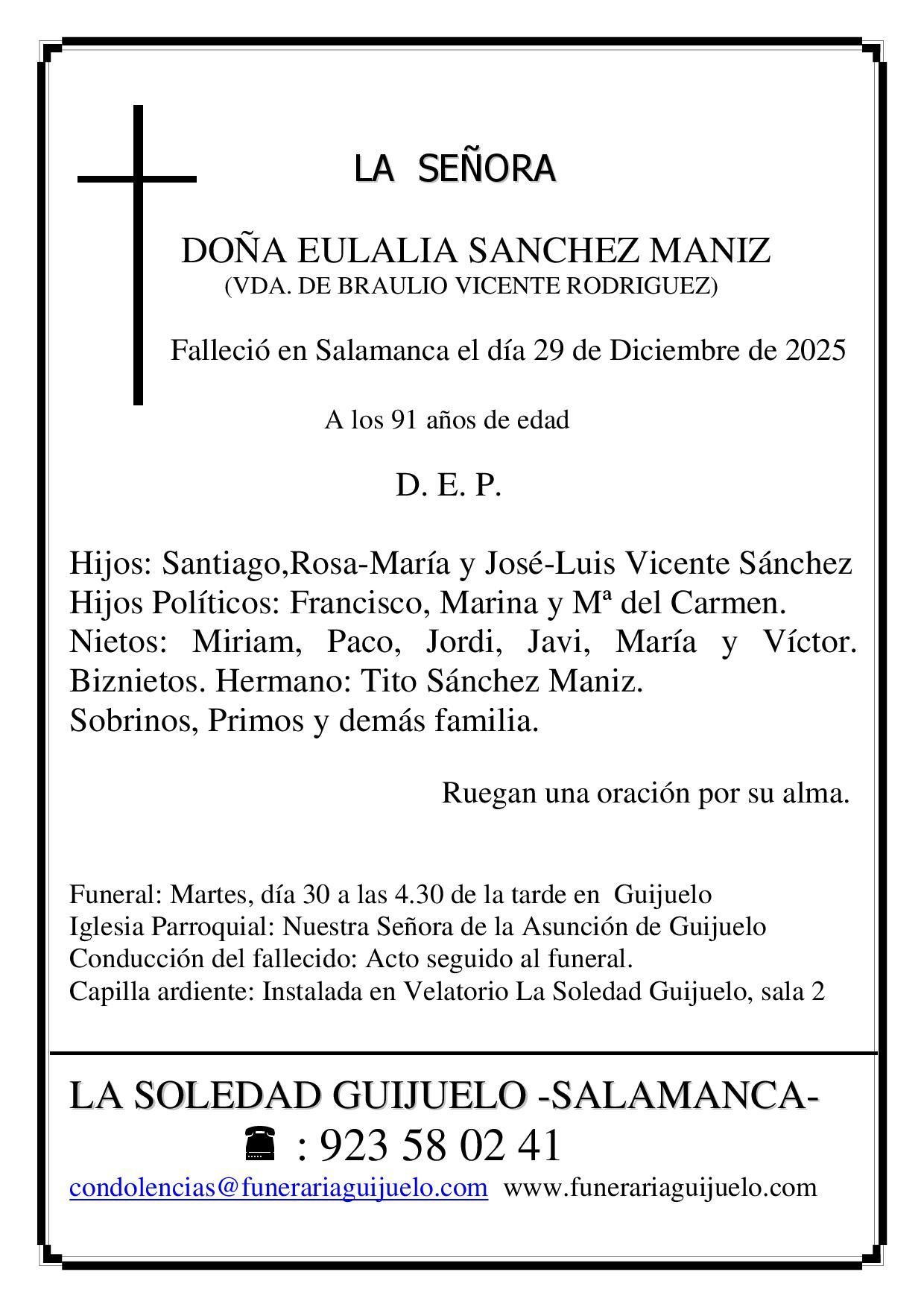 Funeral: Martes, día 30 a las 4:30 horas de la tarde en Guijuelo