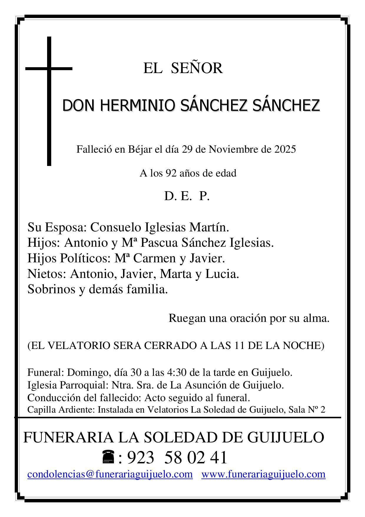Funeral: Domingo día 30, a las 4:30 horas de la tarde en Guijuelo