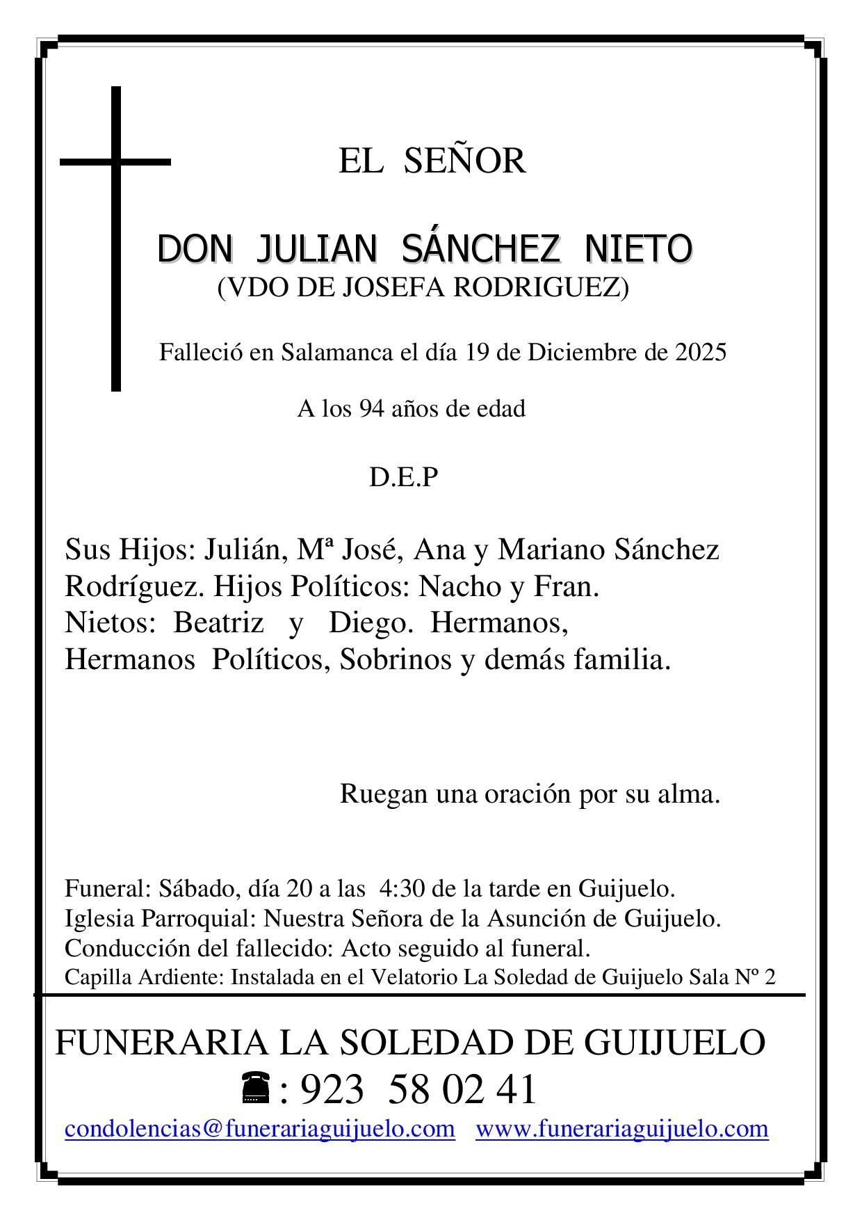 Funeral: Sábado día 20 a las 4.30 de la tarde en Guijuelo